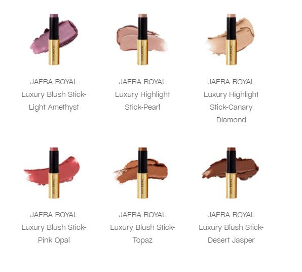 Discover a whole new side of JAFRA ROYAL Luxury Color with new, modern essentials that combine color and skincare for a fresh, naturally radiant look. The Luxury Blush Stick gives you sheer, buildable color in a convenient stick format for on-the-go application, in two matte shades or two shimmering shades. The Luxury Highlight Stick helps define your look in the same buildable format. Choose one of these must-haves for a limited-time price.